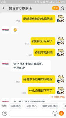 19楼回复、货已收到,夏普的电视,值这个钱,显示效果不错。系统,感觉有点小卡顿,但,也不太明显,可以使用。感觉,还是值价。 使用一周多了,颜色纯正,物美价廉,值得购买。让人惊喜的是,收货后,发了一个带USB的插线板和2张酷猫VIP会员年卡。充分体现出对用户的关怀和关爱!值得信任和再次购买!