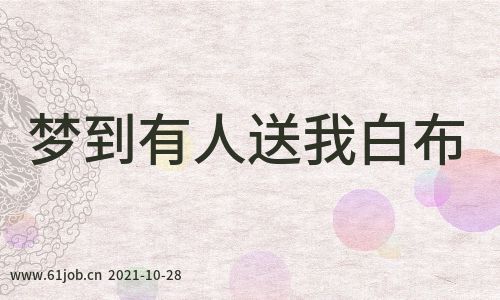 求职者梦到有人送我白布1、预示着你运势不错,自己将会找到一份很好的工作,只要努力奋斗,相信就可以获得想要的结果。