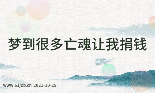 上班族梦到很多亡魂让我捐钱1、预示着你在工作上的压力有些大,其实自己也不用太在意,事情终究会有解决的办法,自己的心情也会因此受到影响。