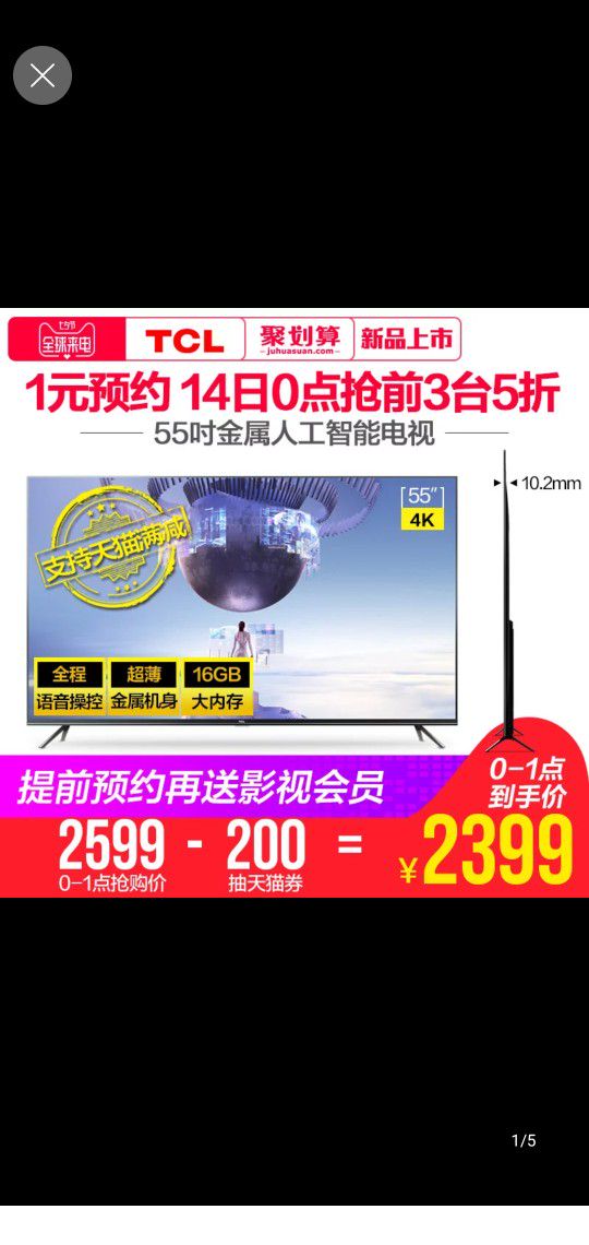 2楼回复、房子还没装好,抵挡不住活动期的诱惑,TCL这款电视性价比超值,很满意,商家的也好。
