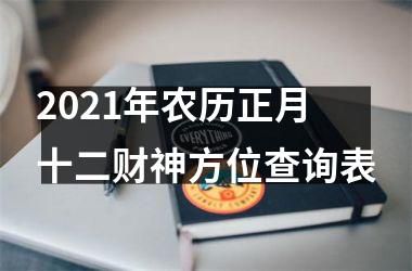 如何查询2021年农历正月十二财神方位?寻找您人生财富的成功编制表格!