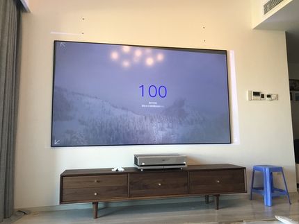 17楼回复、2018-07-06 18:43:48z***9说:非常期待,终于到货了,房子还没装修好,先试用下完美,屏幕还没到在墙上是开灯有亮光后的效果,屏幕到了肯定非常清晰,音响效果真的非常好,开始还担心要买音响外界,现在看来不用了!总之非常高大上 这是视频!