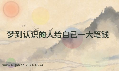 梦到认识的人给自己一大笔钱:预示着你会因为朋友的推荐而得到不错的工作,不过往往是因为你太过操劳,导致身体出现不适。