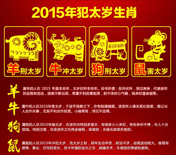 在2021年辛丑年,生肖羊是冲犯太岁的生肖,也就是丑未相冲,冲犯太岁是比较严重的犯太岁,生活方面的变动变化会比较明显。具体影响要看未在八字中的十神属性,比如如果未是财星,那么代表财运的起伏;如果未是官星,代表压力大、事业的变化。
