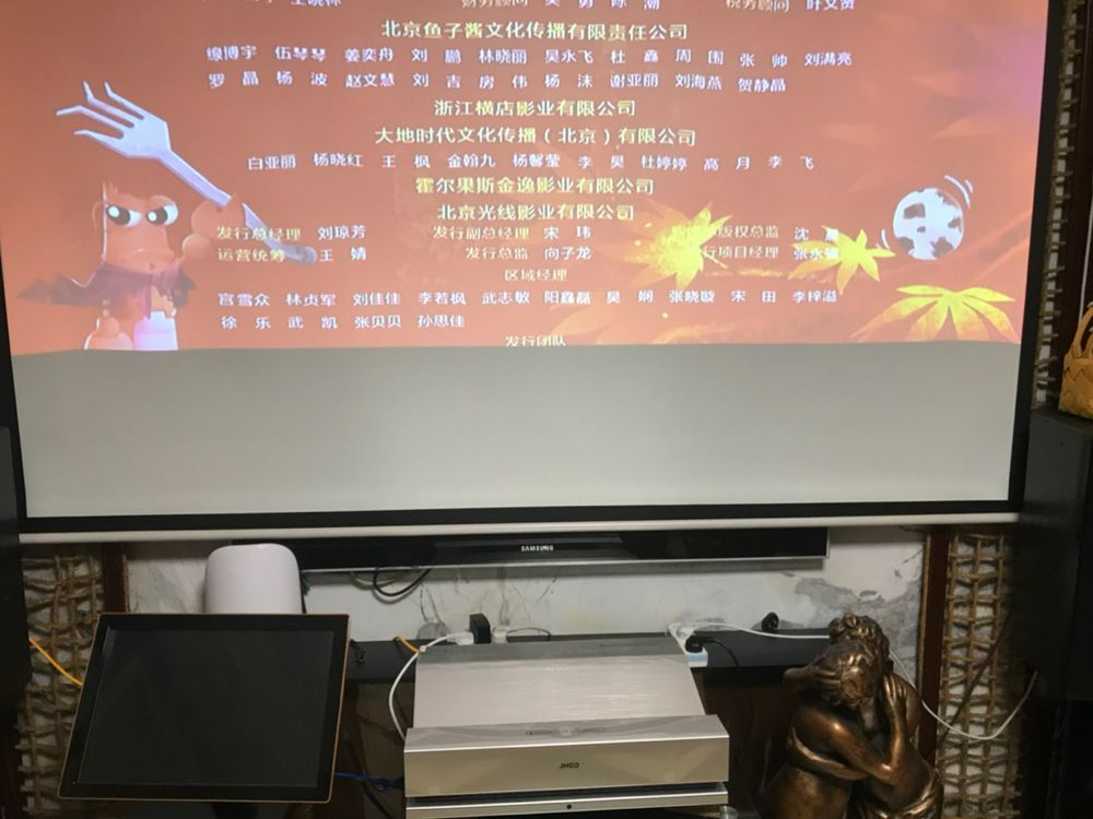 11楼回复、2018-07-06 18:43:48z***9说:非常期待,终于到货了,房子还没装修好,先试用下完美,屏幕还没到在墙上是开灯有亮光后的效果,屏幕到了肯定非常清晰,音响效果真的非常好,开始还担心要买音响外界,现在看来不用了!总之非常高大上 这是视频!