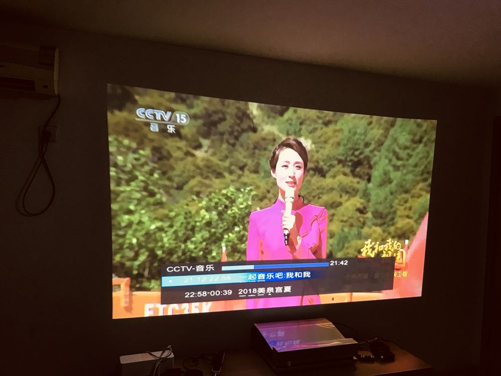 18楼回复、2018-07-01 13:48:29w***2说:用了10天,总的来说效果到达预期,片源和光线对效果影响较大,4k 高清片源效果还是很好,美中不足就是,左右上角部分对焦没法同时清晰对焦,不过中间主画面很清晰,不影响观看,放在电视柜上就可以投100寸,看电影超爽!