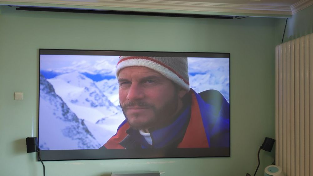 1楼回复、2018-07-06 16:43:32y***a说:幕布还没买,直接投在墙上,装了幕布效果应该不错,音响效果不错。短距离投影无对手。