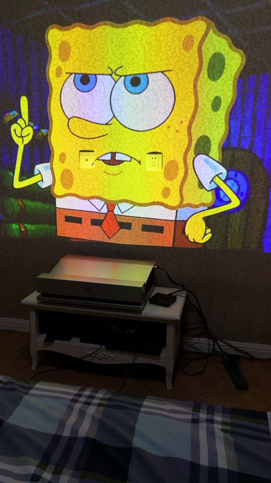 6楼回复、2018-06-28 22:14:10帅***号说:收到货不敢相信是我买的激光电视,一个人很费力的才从物管拉回来。好大一台啊,虽然是目前市面上投射比大的投影仪了,还是好大,分量重难怪值这么多钱。。 我不想让电视柜还要离墙掰出来一节,所以选择的s2。只需50cm的电视柜就可以投100寸。白天和晚上直投的效果如图,就等新房装好后安装硬幕了。哈哈哈