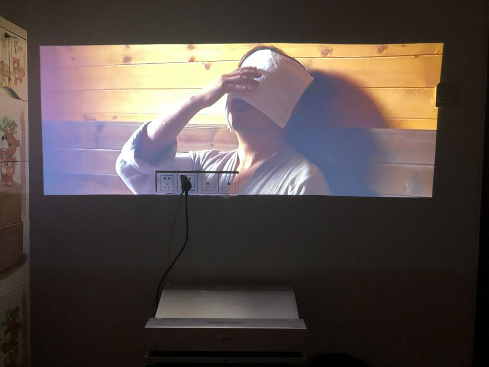 12楼回复、2018-06-30 09:50:31f***6说:机器是27号收到的,还好赶上世界杯了。菲涅尔幕还没到,抗光效果还没法体验。用的是原来的珠光幕布,后三张是拉开窗帘早上8点多的效果,张是拉上窗帘的,还不错,但需要说明的是,超短焦投影一定不能用软幕,原因是幕布稍有不平,因为投影方式造成的变形非常明显。机器很沉,风扇声音不小。试了一下对焦,基本看不出效果,调焦前后区别不大。系统自带的资源很多是收费的,据说是绑定了优酷爱奇艺的资源,本人是这两个平台的收费会员,但没找到会员入口,还需要再购买VIP才行。画质可以接受,收看CCTV5高清世界杯及其他卫视高清,涂抹感是有的,看MKV资源要好一些。总之从光源寿命、亮度,观影效果看,是大屏液晶非常好的替代选择。现在就等荧幕提升亮光环境的效果了。 抗光幕硬幕收到后,48小时之内安装完成,得亏我有激光平衡尺,安装师傅工作量少了好多。没有电梯,上楼真是费劲,主要是包装太重了。白天和有灯光的效果效果比原来的幕有提升,但没有想象的那么大。可视角度确实比较小,尤其是在白天和有灯光的情况下。