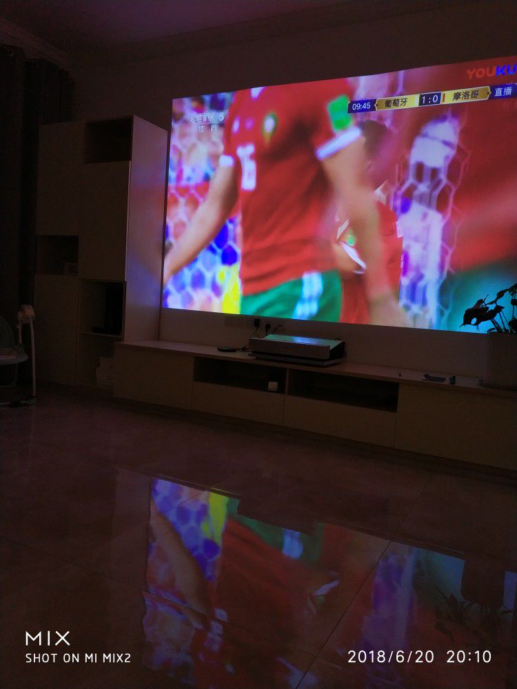 1楼回复、2018-07-06 22:41:50l***6说:收宝贝后就马上开机试看了!次购买激光电视,就被S2震撼住了:看世界杯的超大屏幕、清晰度高、音响效果好!虽然抗光幕布迟迟没有到货,无法享受到真正的高清效果,但投影到白墙上的画面已经相当的不错了!期待抗光幕布到了后的真正的激光电视效果!